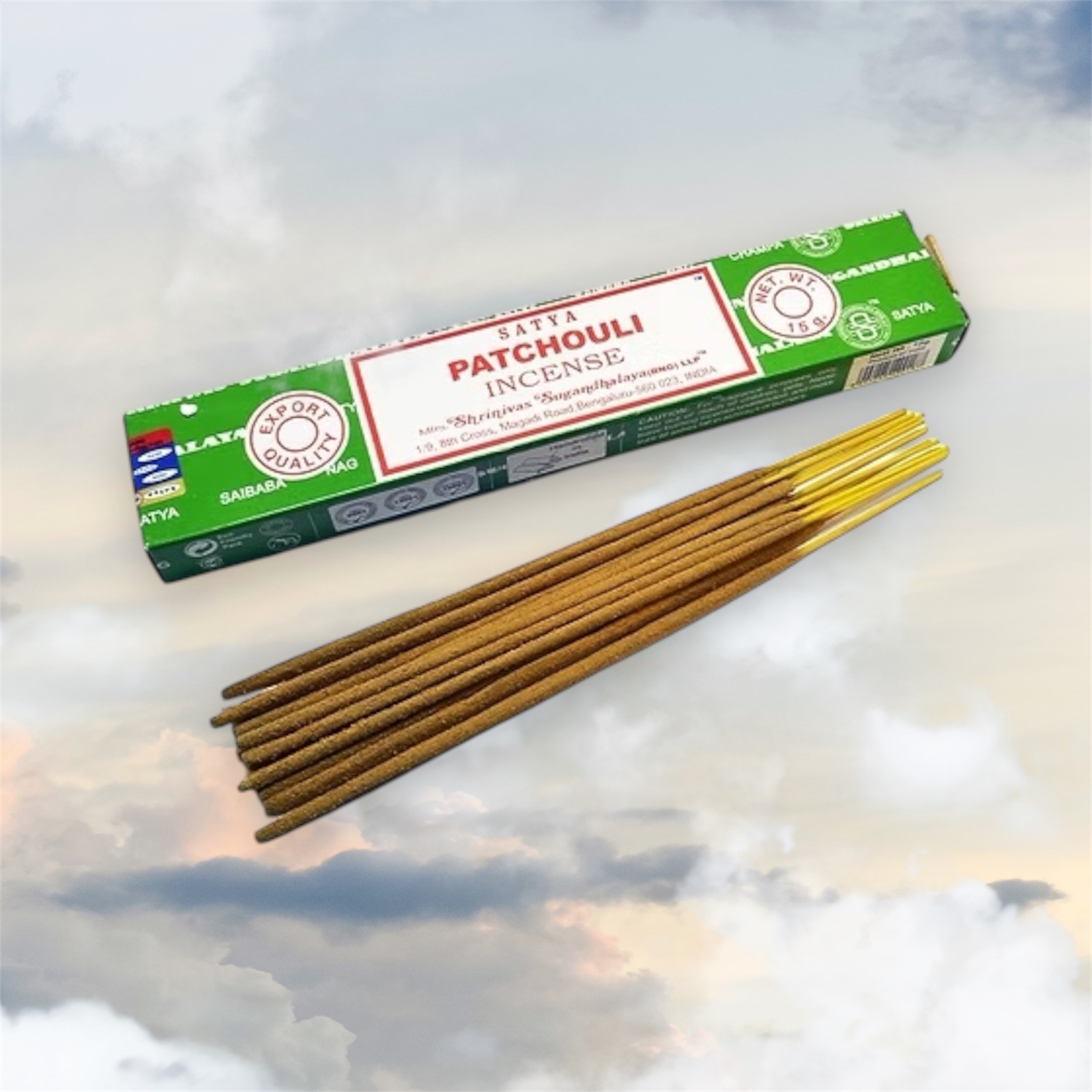 Encens Bâtons PATCHOULI Satya le paquet de 15g. (Environ 12 bâtonnets) Encens indiens Patchouli Satya. Bâtons d’encens artisanaux fabriqués en Inde, roulés à la main de manière traditionnelle. Les encens indiens Nag champa sont très réputés et de grande qualité. Les encens sont appelés Agarbatti en Inde (hindi), ils sont utilisés pour les rituels, les pujas et la méditation.
